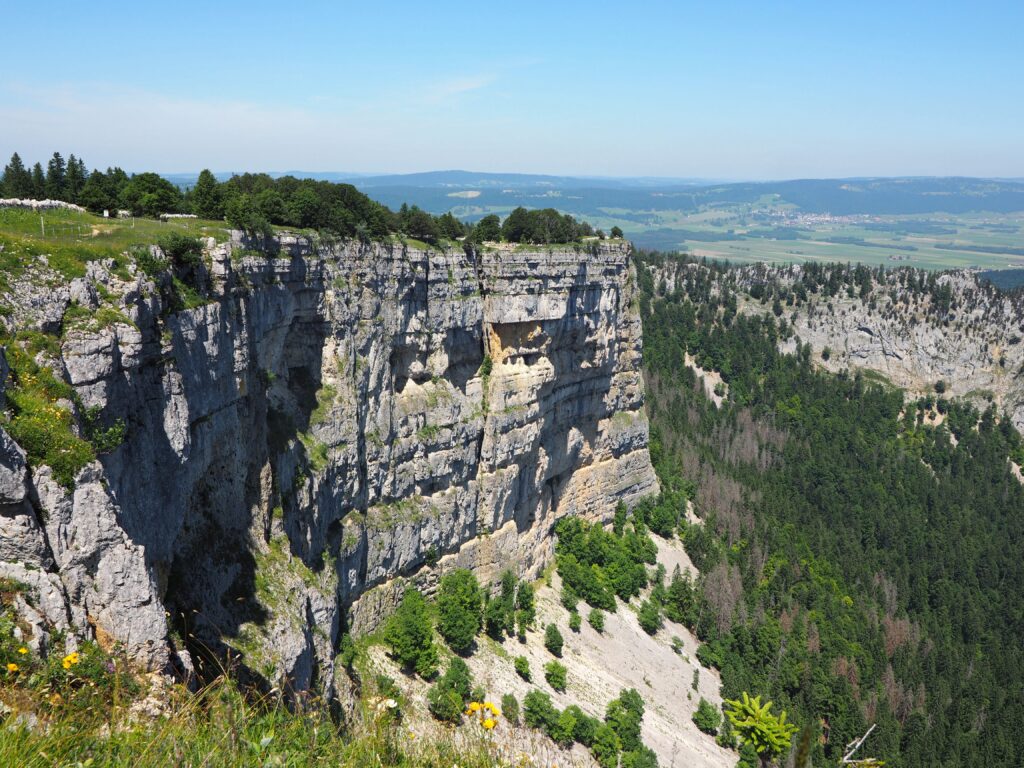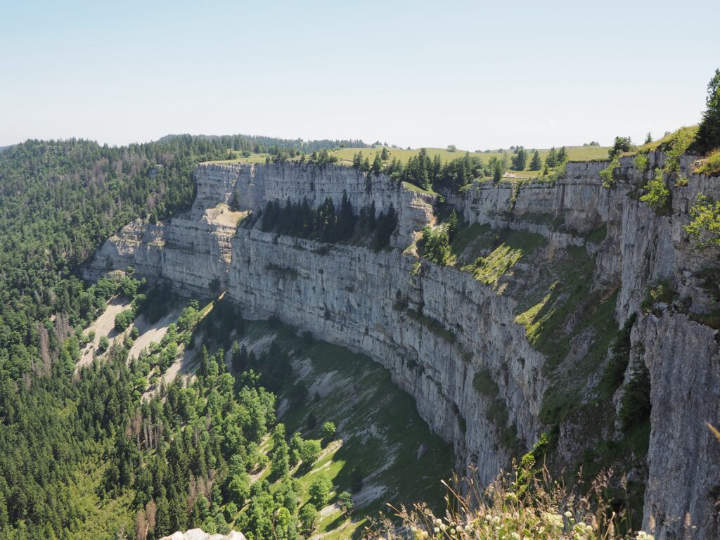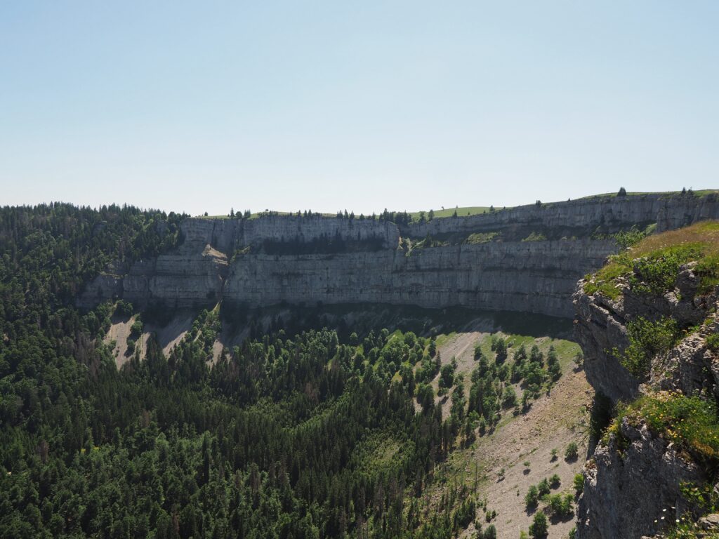 ここはJura山脈の一部。フランスとスイスの国境になっている。ちなみにJura山脈はジュラ紀の語源になった。古代の海の堆積物が石灰岩となり、その後氷河に覆われた。その氷河が川となって、この地形ができたらしい。アイベックスやシャモアなどの野生動物もみられるらしい。